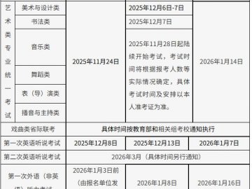 2026北京高考艺术类统考播音与主持类考试时间2025年12月6日-7日,具体考试场次及时间以准考证为准;考试时须携带考生本人身份证和准考证入场。