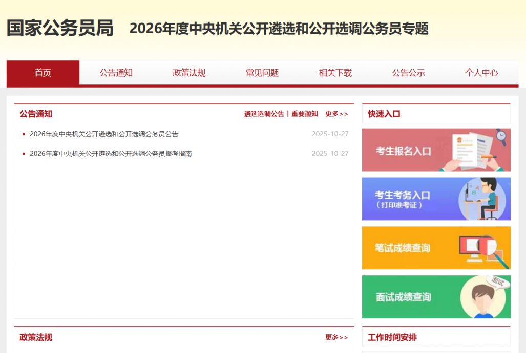 2026中央国家公务员遴选考试网官网入口