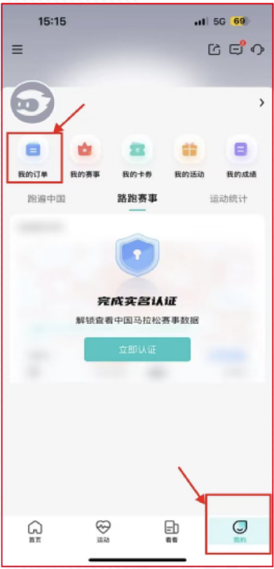 ② 点击“我的订单”按钮,在赛事订单列表中即可查询中签状态。