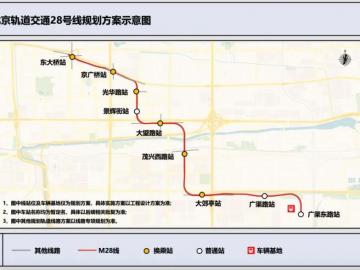 根据公示内容,28号线起点为东大桥站,主要沿朝阳门外大街、朝阳路、针织路、建国路、茂兴西路、广渠路敷设至百子湾地区。线路正线全长约8.7公里,全部为地下线,共设车站9座。