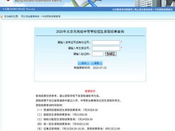 2025北京中考提前招生录取查询时间wield7月21日8:30、指标生录取查询时间为7月24日8:30,统一招生录取查询时间为7月30日12:00,查询入口网址https://query.bjeea.cn/queryService/rest/admission/109