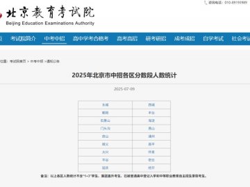 自7月9日12:00,考生可登录北京教育考试院网站(www.bjeea.cn)查询成绩及各区录取总分分段统计。