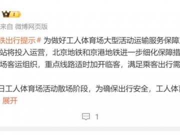 为做好工人体育场大型活动运输服务保障工作,活动期间工人体育场站将投入运营,北京地铁和京港地铁进一步细化保障措施,加强人员疏导力量和现场客运组织,重点线路适时加开临客,满足乘客出行需求。