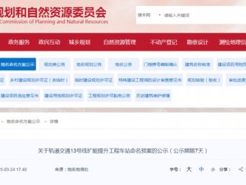 公示信息显示,轨道交通13号线扩能提升工程,途经西城、海淀、昌平、朝阳和东城五区,本次需对新建和改造的11座车站进行命名。经研究,命名预案如下: