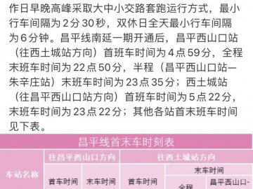 北京地铁昌平线首末车运营时间及时刻表站点(图)