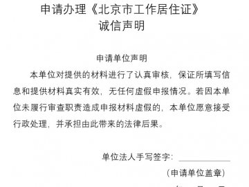 北京单位申请办理工作居住证诚信声明下载